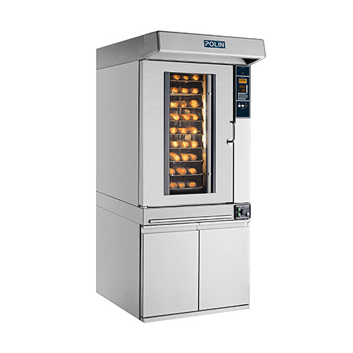 Il forno SCOOTER è il più piccolo della famiglia dei rotativi Polin, ma conserva le caratteristiche costruttive e tutte le qualità tecniche dei fratelli maggiori. La rotazione del carrello garantisce un’elevata uniformità di cottura.