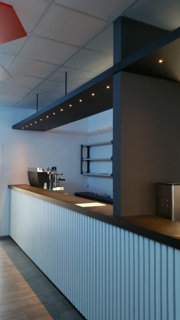 Trattasi di un angolo bar all’interno di una sala giochi. Il progetto è stato realizzato in collaborazione con l’Architetto Memeo Patrizia.